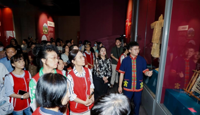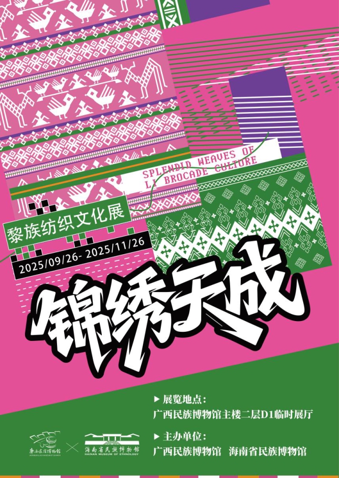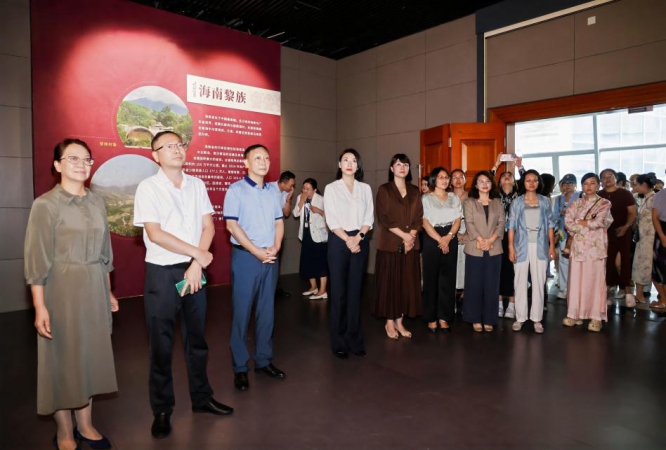 2025年9月26日下午,由海南省民族博物馆与广西民族博物馆联合主办的“锦绣天成——黎族纺织文化展”在广西民族博物馆隆重开幕。出席开幕式的领导和嘉宾,有广西壮族自治区文化和旅游厅博物馆与文物安全处一级调研员 施融宁,广西民族博物馆副馆长刘创举、副馆长黄诗莉,海南省民族博物馆副馆长陈佩、支部副书记王扬能,伊犁哈萨克自治州博物馆副馆长顾倩。社会各界群众及媒体记者参加活动。