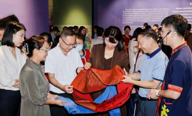 开幕仪式上,陈佩副馆长表示,海南与广西地缘相近、人文相通,此次“锦绣天成——黎族纺织文化展”具有重要意义,它不仅是一次文化展示,也是琼桂两地文化交流的重要平台,更是贯彻落实习近平总书记“铸牢中华民族共同体意识”重要论述的切实行动。